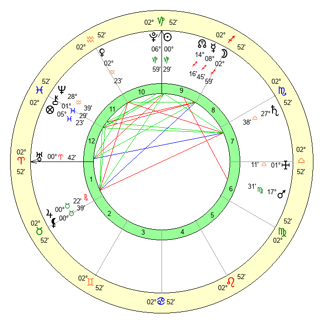 | Mars | 17 Virgo 31 | 4 Leo 28 | 20 Virgo 57 |