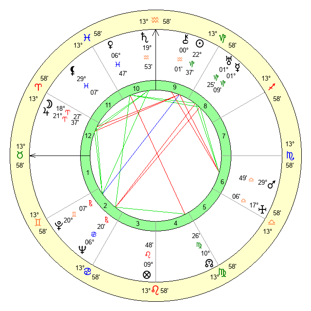 | Moon | 18 Aries 23 | 17 Cancer 32 | 7 Virgo 17 |