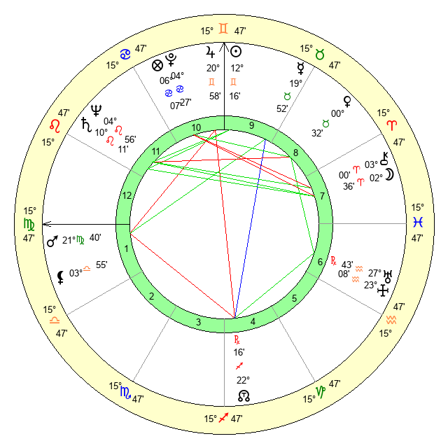 Mars | 21 Virgo 40 | 22 Leo 31 | 21 Scorpio 15 |
