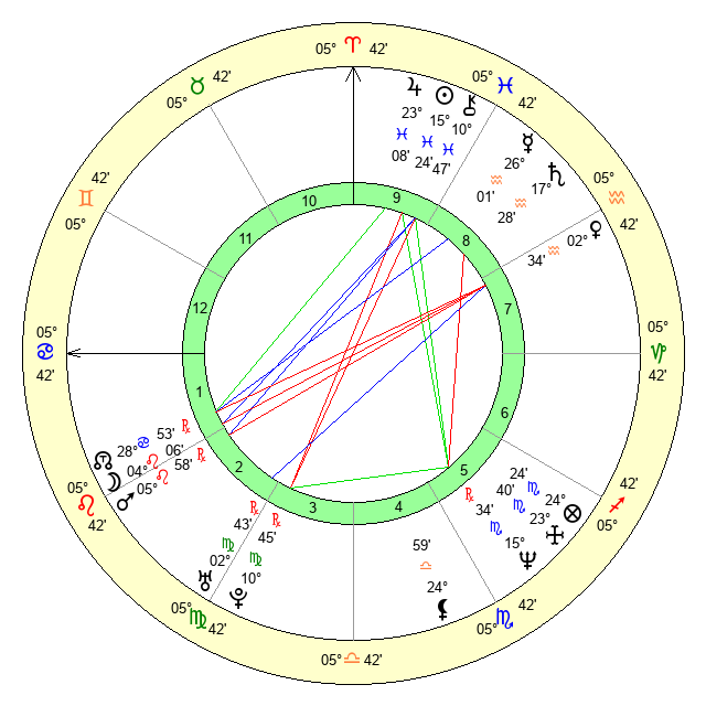 | Moon | 4 Leo 4 | 16 Gemini 40 | 5 Scorpio 16 |