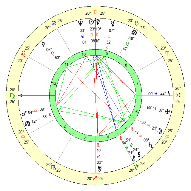 | Sun | 23 Gemini 8 | 24 Gemini 35 | 20 Libra 54 |