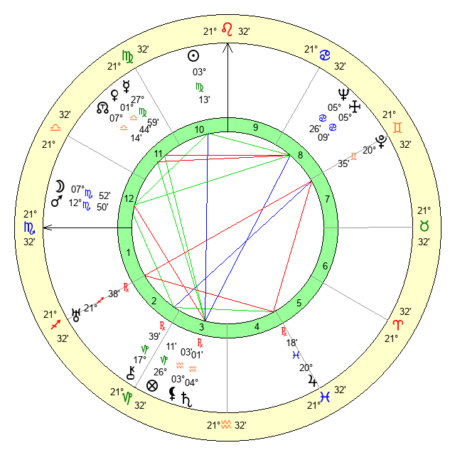 | Mercury | 28 Virgo 0 | 19 Leo 21 | 23 Capricorn 27 |