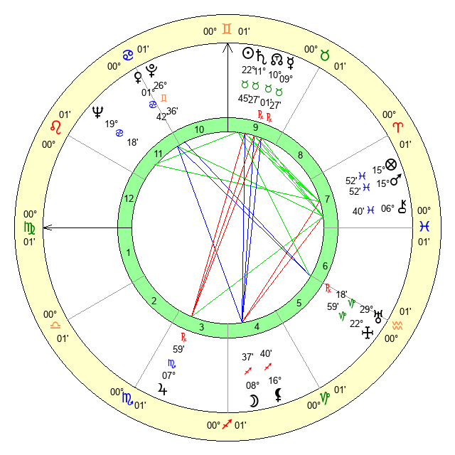 | Mars | 15 Pisces 54 | 12 Leo 9 | 0 Gemini 3 |