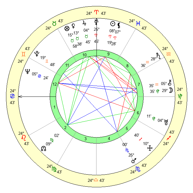 | Neptune | 5 Cancer 26 | 29 Pisces 58 | 8 Cancer 54 |