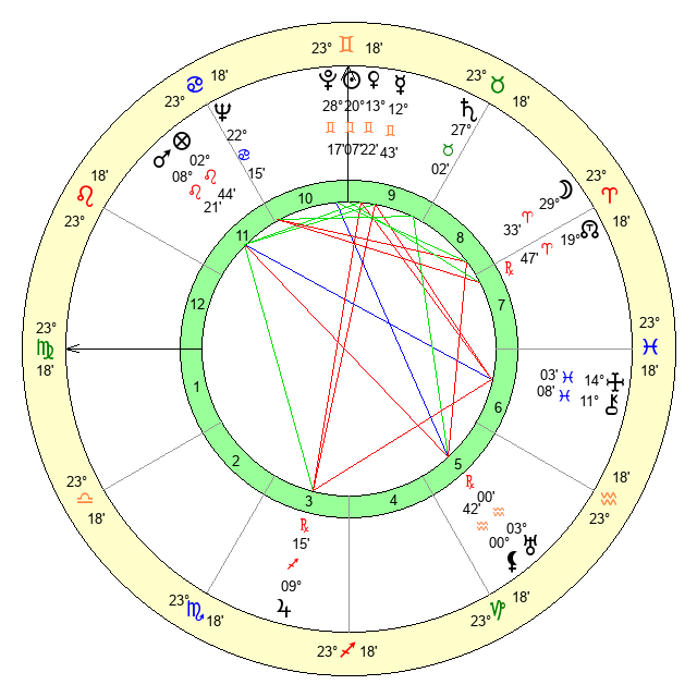 | Venus | 13 Gemini 22 | 5 Taurus 18 | 2 Scorpio 36 |