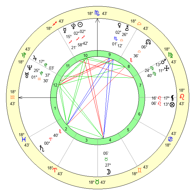 | Moon | 27 Taurus 2 | 21 Virgo 2 | 6 Gemini 10 |