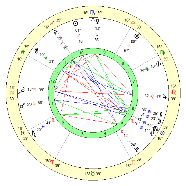 | Moon | 23 Cancer 34 | 21 Virgo 2 | 0 Scorpio 8 |