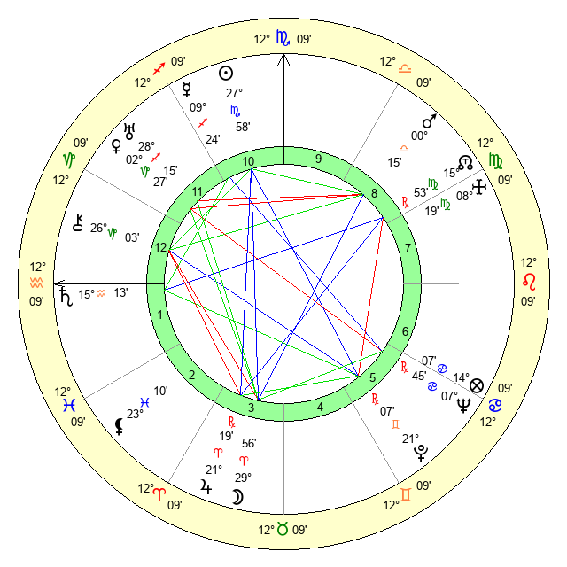 | Neptune | 7 Cancer 46 | 27 Pisces 12 | 5 Cancer 23 |