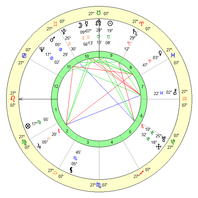 | Moon | 9 Gemini 57 | 28 Libra 28 | 26 Leo 38 |