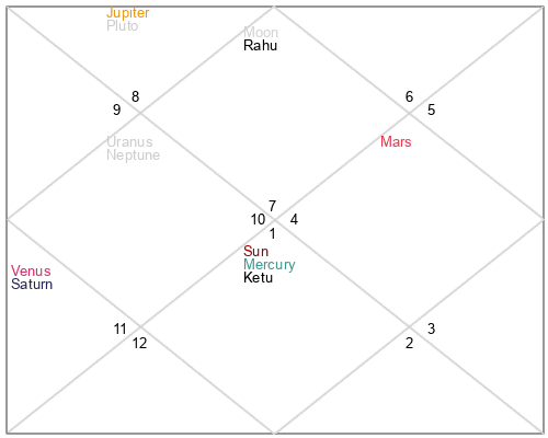 | Rahu | 6 Scorpio 9 | 25 Pisces 53 | 4 Scorpio 34 |