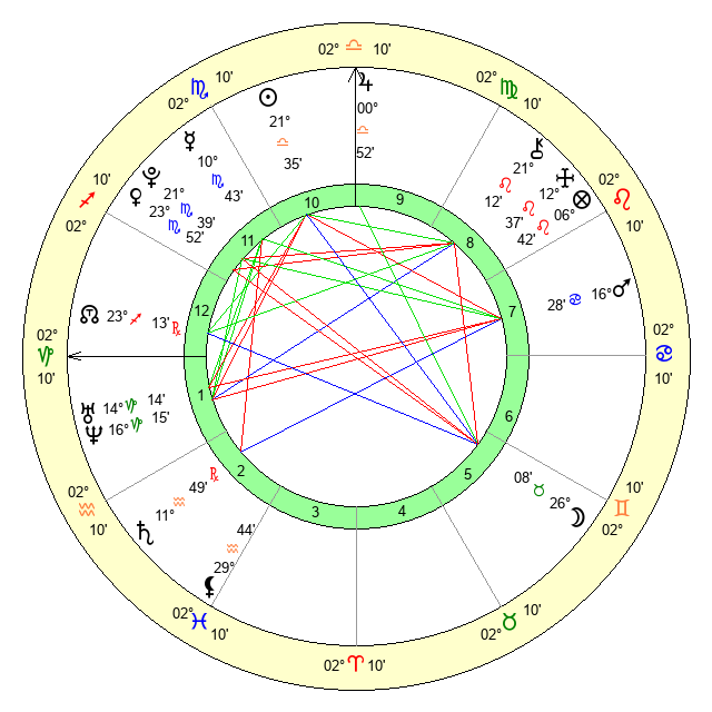 | Venus | 23 Scorpio 52 | 1 Libra 1 | 3 Capricorn 48 |