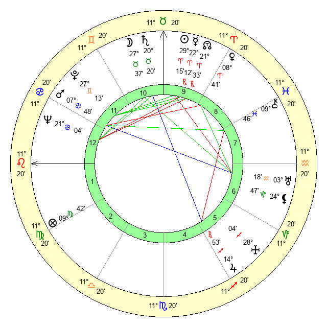 | Sun | 29 Aries 15 | 29 Aries 53 | 17 Leo 39 |