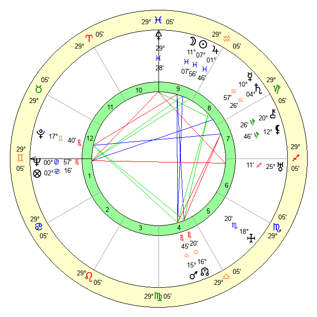 | Moon | 11 Pisces 12 | 4 Pisces 55 | 8 Virgo 59 |
