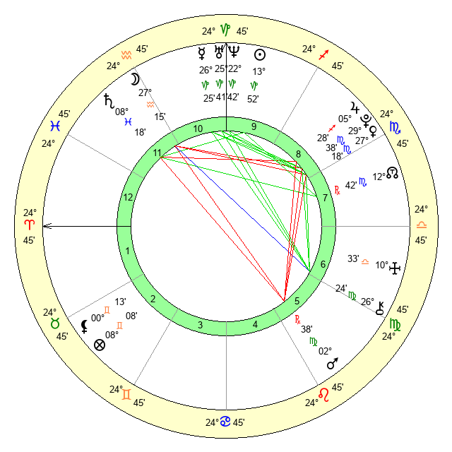 | Moon | 27 Aquarius 16 | 14 Pisces 47 | 1 Aries 29 |