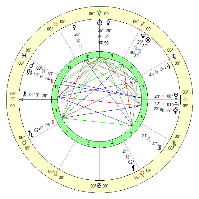 | Pluto | 27 Virgo 23 | 0 Aquarius 57 | 26 Virgo 40 |