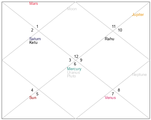 | Ketu | 3 Cancer 40 | 17 Virgo 54 | 0 Cancer 54 |