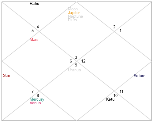 | Ketu | 6 Aquarius 47 | 15 Virgo 8 | 0 Aquarius 29 |