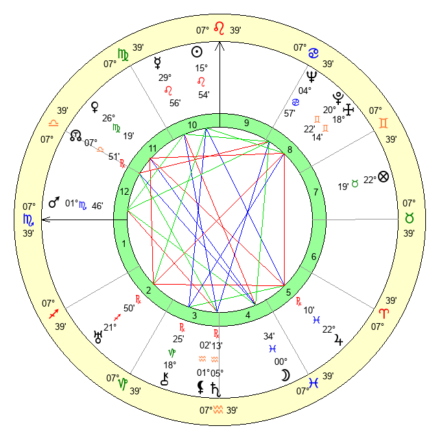 | Sun | 15 Leo 54 | 17 Leo 21 | 16 Sagittarius 27 |