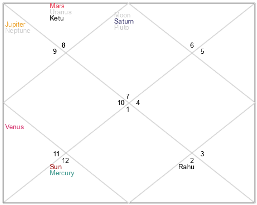 | Rahu | 10 Gemini 19 | 27 Pisces 20 | 8 Gemini 9 |