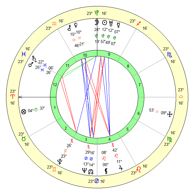 | Venus | 10 Aquarius 22 | 1 Pisces 39 | 25 Gemini 23 |