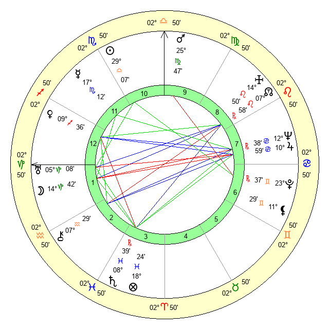 | Sun | 29 Libra 8 | 0 Scorpio 17 | 29 Aquarius 40 |