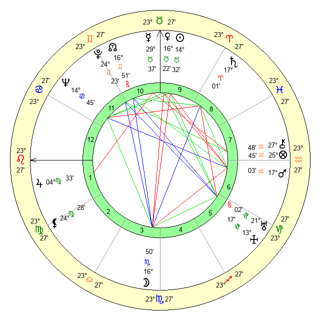 | Moon | 16 Scorpio 57 | 28 Leo 42 | 14 Aquarius 39 |