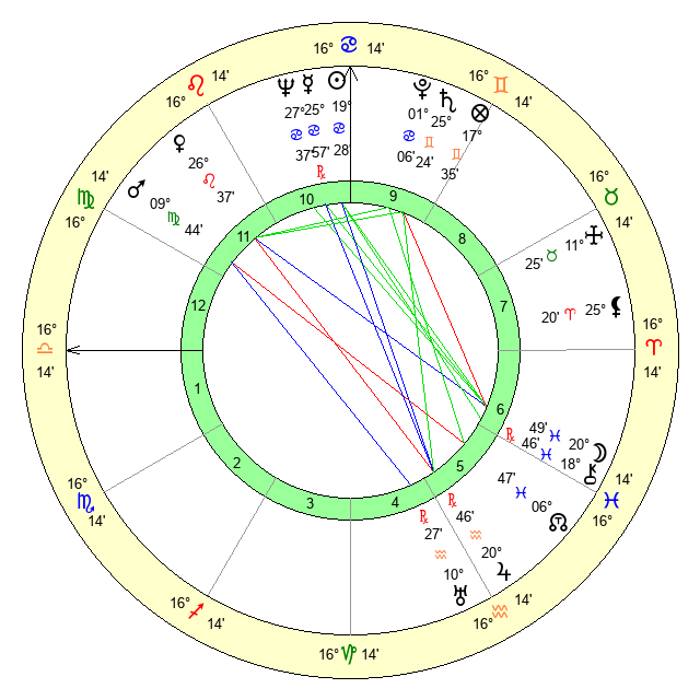 | Neptune | 27 Cancer 38 | 2 Aries 9 | 0 Leo 27 |