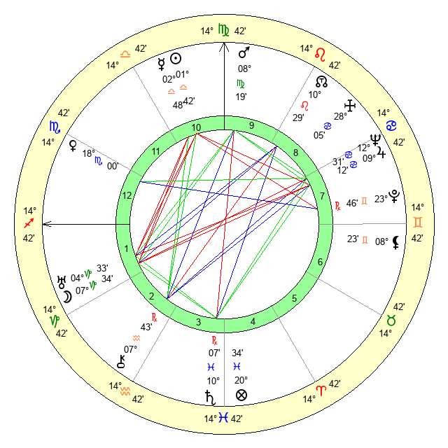 | Mars | 8 Virgo 20 | 2 Scorpio 17 | 21 Scorpio 56 |