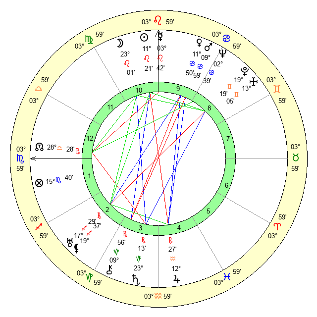 | Mars | 9 Cancer 59 | 28 Virgo 36 | 23 Virgo 10 |