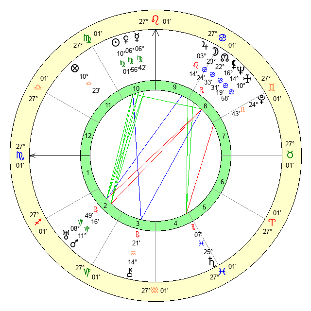 | Sun | 10 Virgo 2 | 11 Virgo 27 | 7 Capricorn 52 |