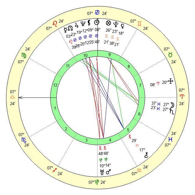 | Sun | 8 Cancer 41 | 10 Cancer 6 | 3 Scorpio 8 |