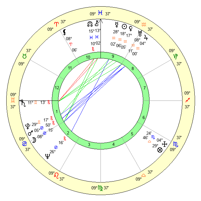 | Saturn | 11 Gemini 57 | 18 Pisces 6 | 20 Gemini 23 |