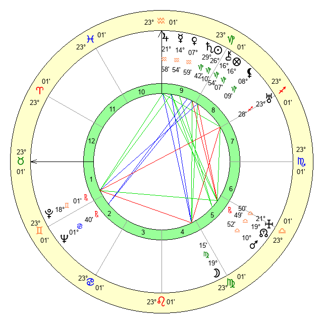 | Moon | 19 Virgo 9 | 9 Virgo 25 | 25 Aquarius 8 |