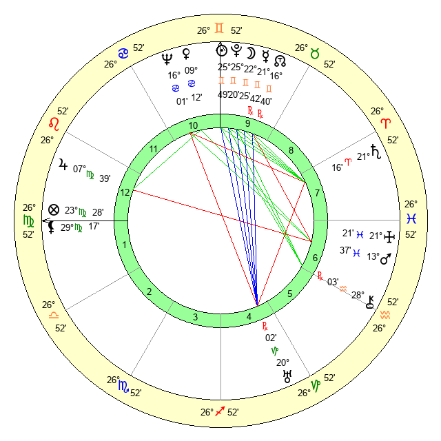 | Moon | 22 Gemini 19 | 12 Pisces 43 | 19 Virgo 5 |