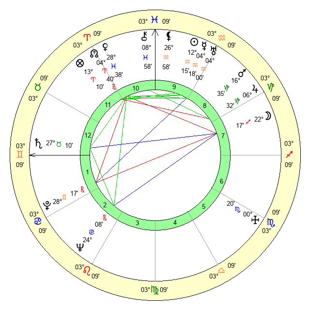 | Saturn | 27 Taurus 51 | 17 Pisces 26 | 7 Gemini 30 |