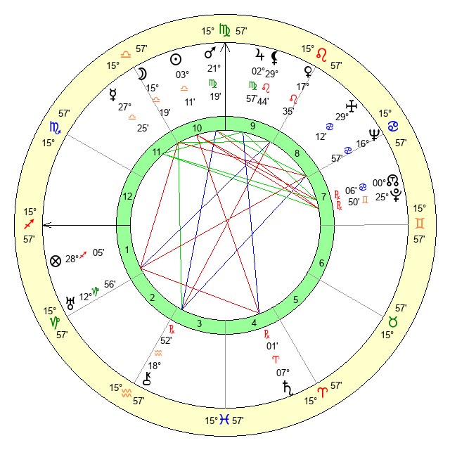 | Saturn | 7 Aries 34 | 27 Pisces 58 | 5 Aries 41 |