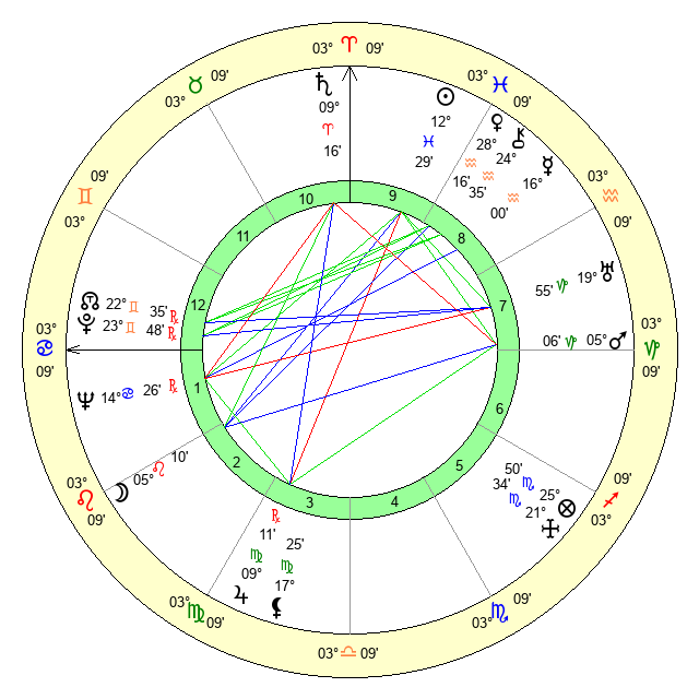 | Sun | 12 Pisces 30 | 13 Pisces 22 | 5 Cancer 22 |