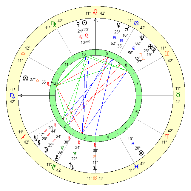 | Mercury | 24 Leo 11 | 4 Leo 55 | 24 Sagittarius 36 |