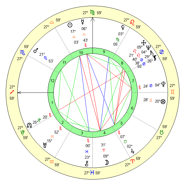 | Saturn | 0 Leo 21 | 26 Pisces 56 | 27 Cancer 9 |