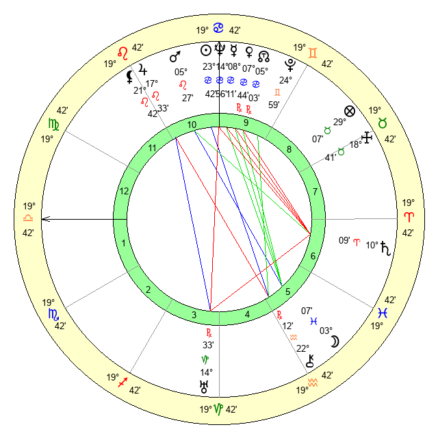 | Sun | 23 Cancer 43 | 24 Cancer 25 | 17 Scorpio 55 |