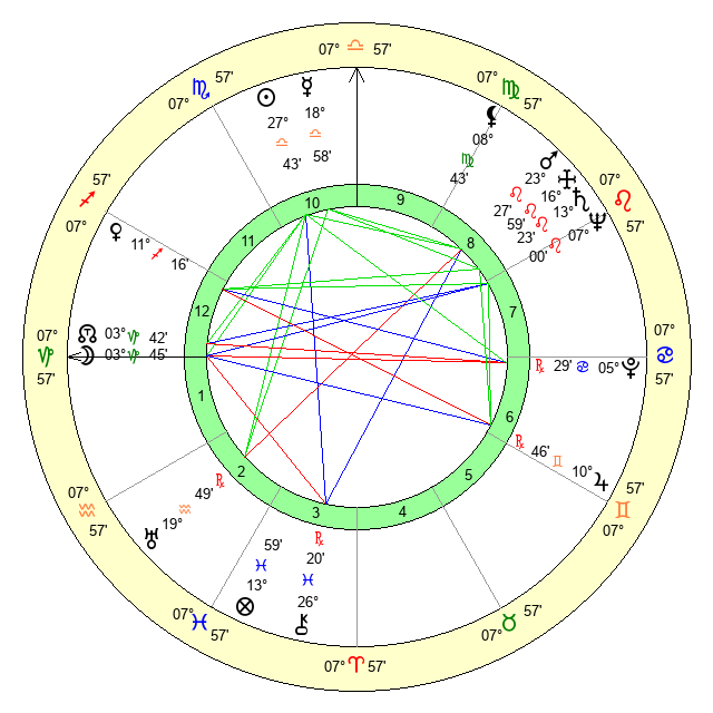 | Pluto | 5 Cancer 28 | 1 Aquarius 22 | 3 Cancer 43 |