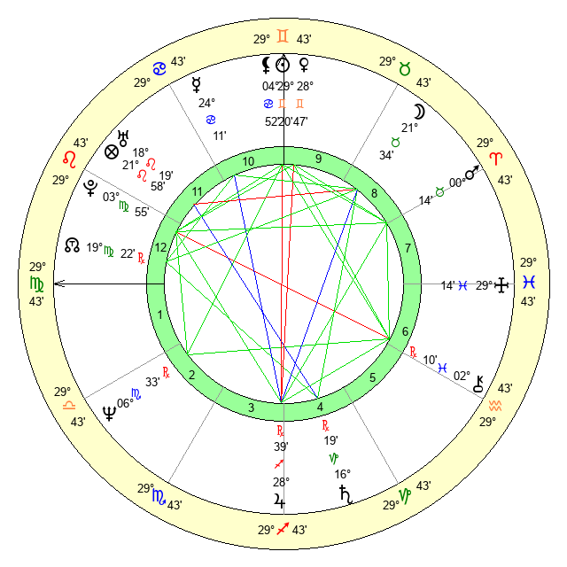 | Sun | 29 Gemini 20 | 29 Gemini 37 | 1 Virgo 30 |