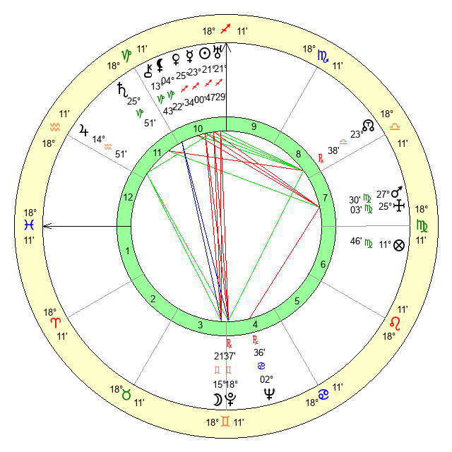 | Mars | 27 Virgo 30 | 5 Leo 46 | 1 Libra 8 |
