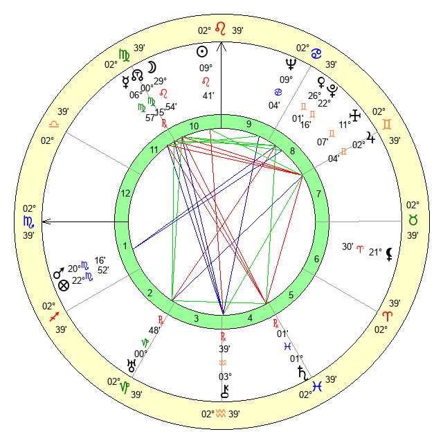 | Sun | 9 Leo 41 | 10 Leo 39 | 7 Sagittarius 51 |