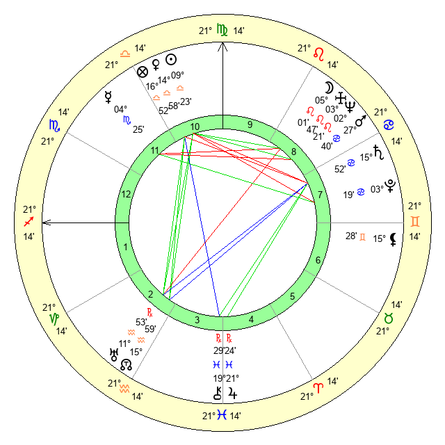 | Venus | 14 Libra 59 | 17 Virgo 24 | 2 Pisces 1 |
