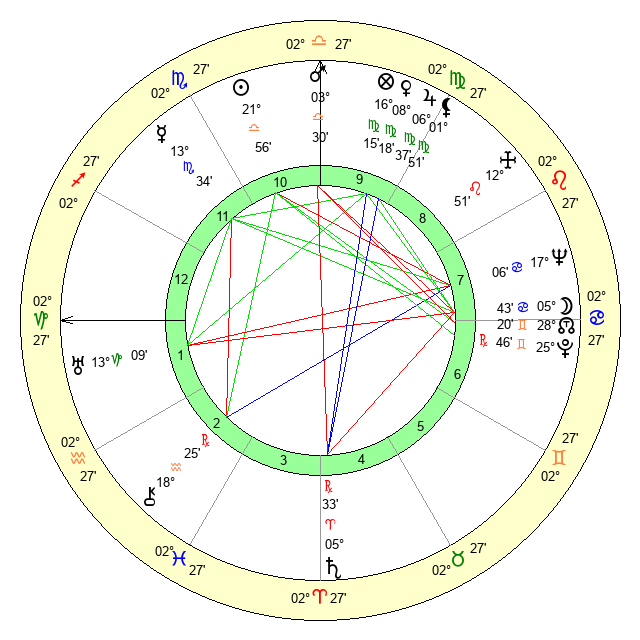 | Jupiter | 6 Virgo 27 | 24 Cancer 0 | 11 Virgo 43 |