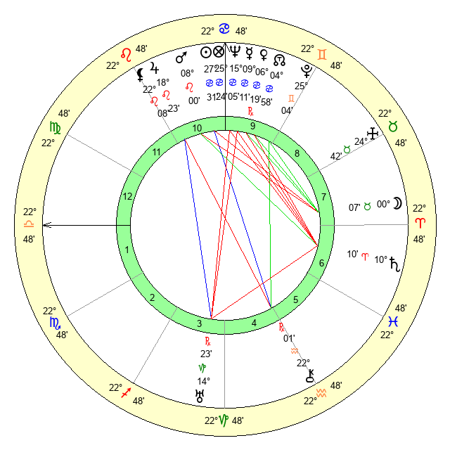 | Venus | 6 Cancer 20 | 18 Gemini 0 | 13 Libra 22 |