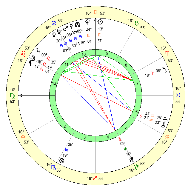 | Sun | 13 Gemini 38 | 14 Gemini 19 | 6 Libra 8 |