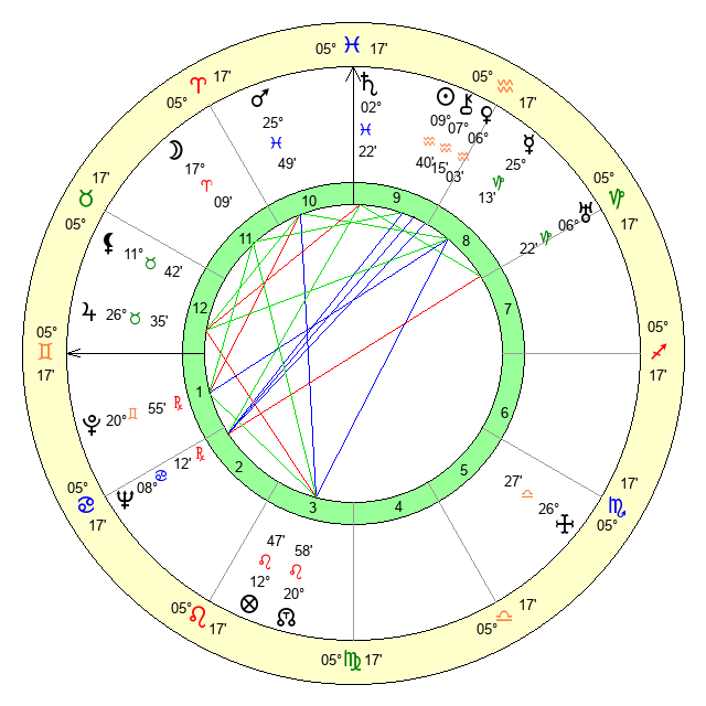 | Moon | 17 Aries 10 | 22 Aquarius 53 | 15 Leo 27 |