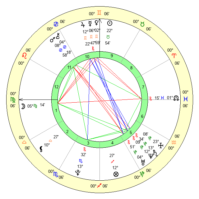 | Moon | 5 Virgo 17 | 4 Sagittarius 13 | 20 Sagittarius 31 |
